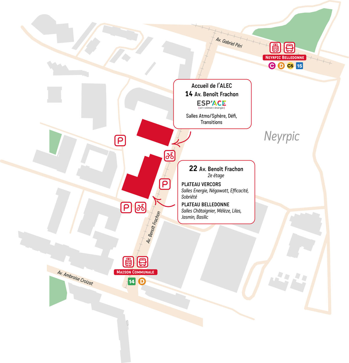 L'accueil du public est situé au 14 avenue Benoît Frachon, 38 400 SAINT-MARTIN-D'HERES. L'équipe vous accueille dans les locaux du bâtiment l'ESP’ACE, mutualisé avec l’Ageden et Atmo.