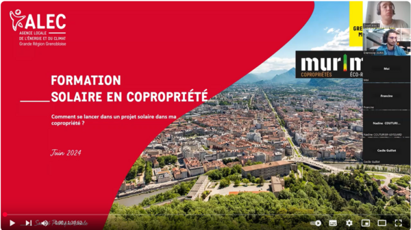Dans le cadre de l’accompagnement des copropriétés sur le dispositif de rénovation Mur Mur de Grenoble Alpes Métropole, l’ALEC a organisé, avec Enercoop, un premier webinaire sur le solaire photovoltaïque en copropriété le 19 juin 2025.