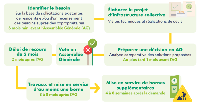 - Source : Guide pour l’installation de bornes de recharge de véhicules électriques et hybrides rechargeables en copropriétés – AVERE France | Avril 2021