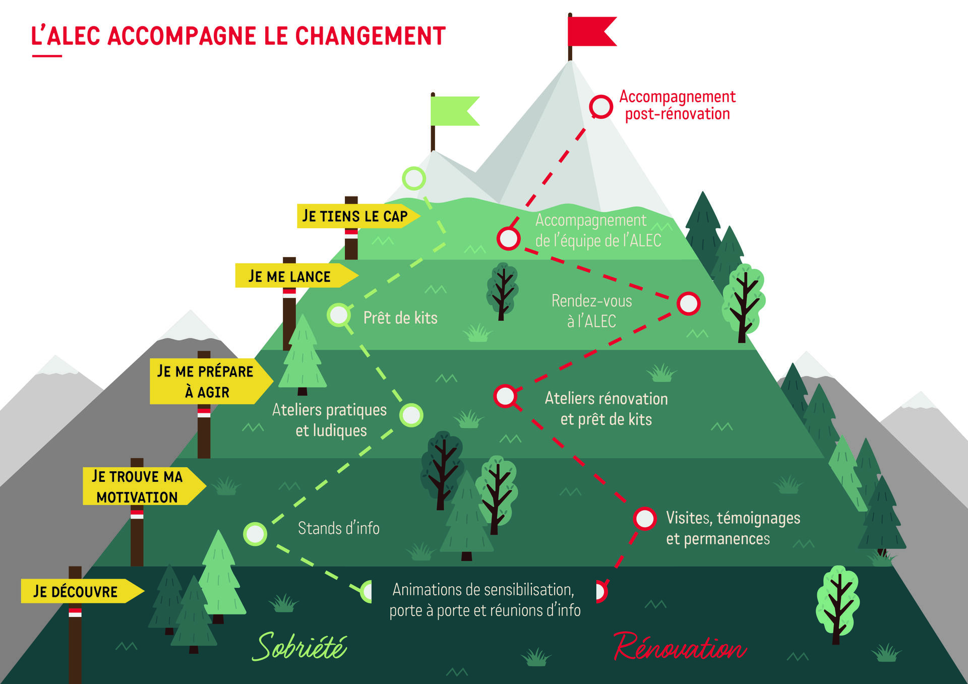 Parce que le changement de pratique est un chemin au long cours, les formats d'animation proposés par l'ALEC sont adaptés aux habitants, du premier niveau d'information sur les éco-gestes à des formations sobriété plus poussées.