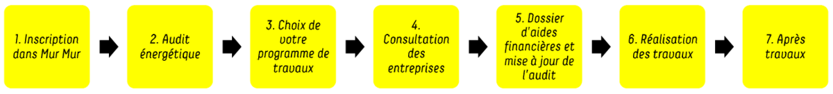- Si vous êtes en revenus modestes ou très modestes et que vous optez pour une rénovation d’ampleur, l’accompagnement dans le cadre du dispositif Mur Mur s’arrête à cette étape. L’instruction des aides locales dans un parcours de Rénovation d’Ampleur pour les revenus modestes ou très modestes se fait directement lors de l’instruction du dossier MaPrimeRénov’.