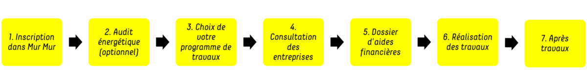 ⇒ Signez la charte d’engagement Mur Mur. Elle marque le début de votre accompagnement et vous ouvre le droit de demander les primes Audit et Travaux Mur Mur.