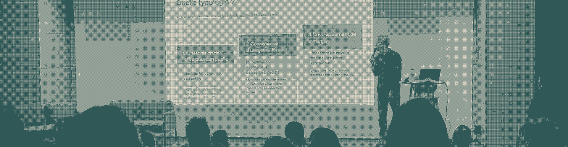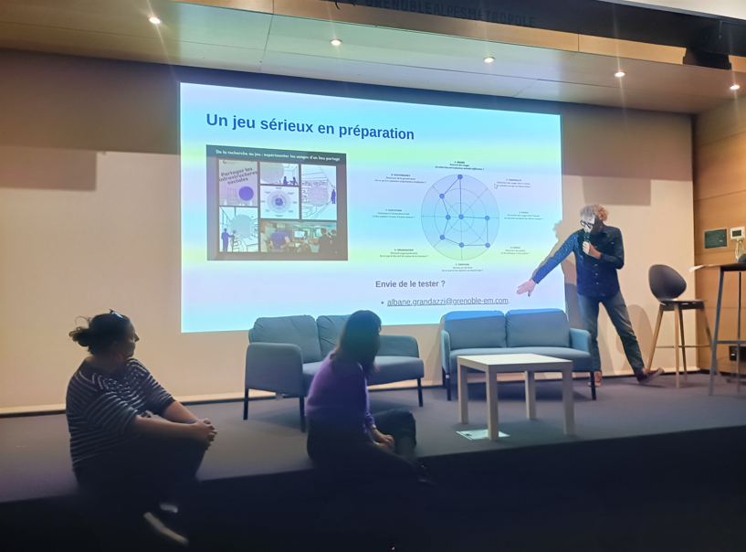 - Sylvain Bouchard de Grenoble École de Management (GEM) a synthétisé un livre blanc sur le sujet ; il a présenté une grille d'auto-diagnostic et un futur jeu sérieux pour expérimenter les usages d'un lieu partagé,