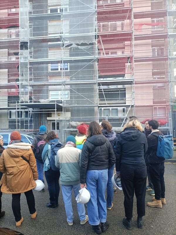 L'équipe de l'ALEC visite le chantier d'une copropriété isolée en paille